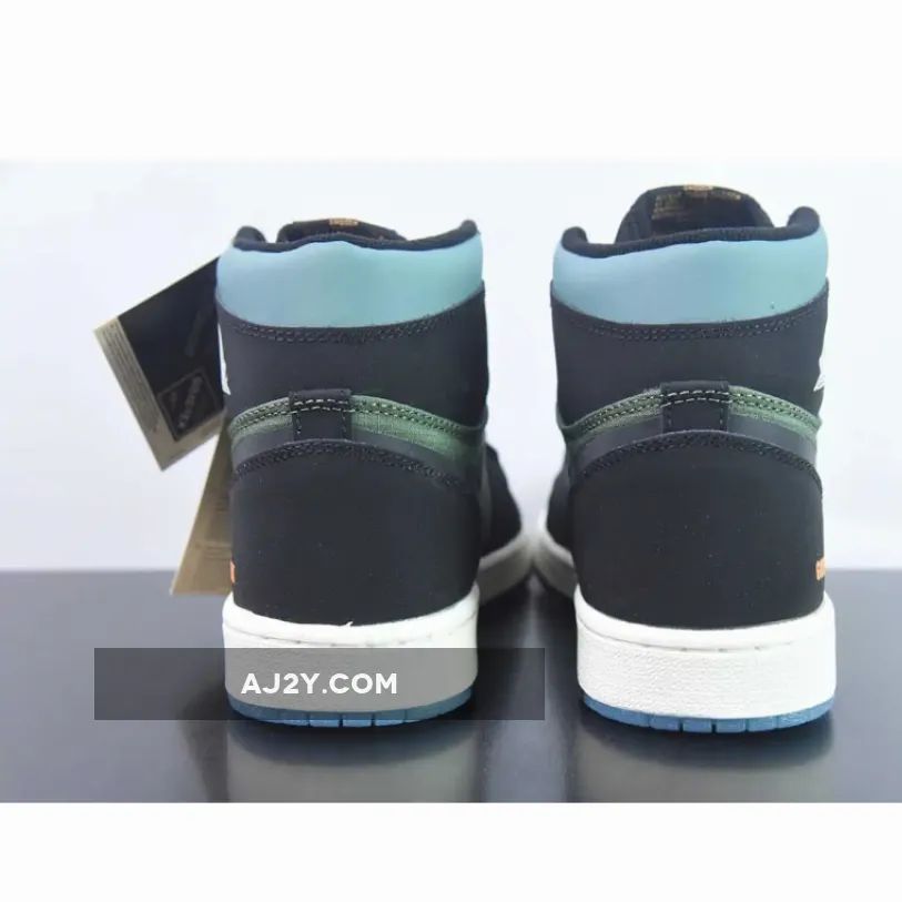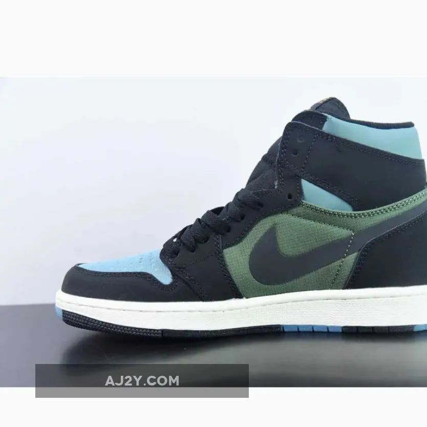 The winterised Jordan 1 starts with a blue ripstop mesh vamp with olive green ripstop fabrics encompassing the quarter panels. Nubuck and nylon materials come together across Peter Moore’s design in a familiar, but updated way. Meanwhile, black nubuck leather overlays wrap most of the upper, juxtaposed with a blue nubuck collar and a white Jordan Wings symbol on the lateral. “GORE-TEX” text are stamped onto the lateral heel, marking the sneaker’s protection against the elements. Bright orange accents illuminate the Nike Air labels on the tongue, while co-branding on the sockliners arranges a complementing blue and orange hue. The sail white midsole adds a touch of vintage that harkens back to the silhouette’s ‘80s origins. The pair also features an experimental, “deconstructed” aesthetic that works well with the toughness of the Element GORE-TEX makeover. Underfoot, the outsole opts for a partly transparent finish that increases grip in tough conditions.