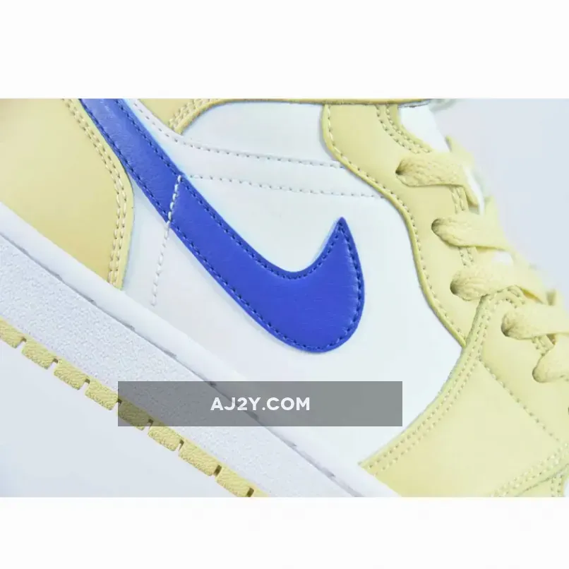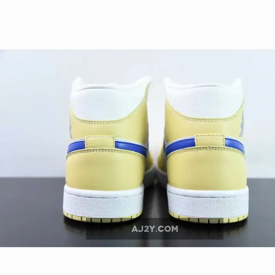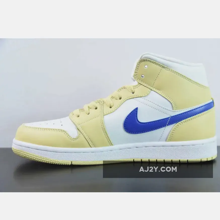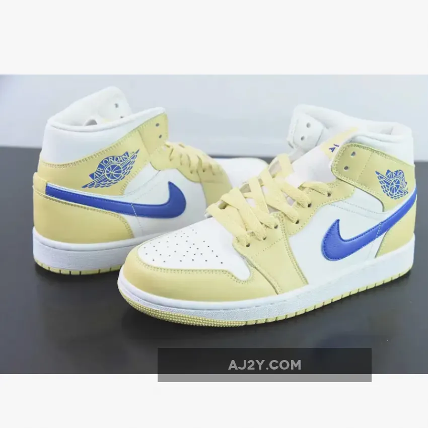 Taking on an official color makeup of Lemon Wash/Lapis-White. This offering of the Air Jordan 1 Mid comes constructed in a full leather build with mesh tongues and lining.
