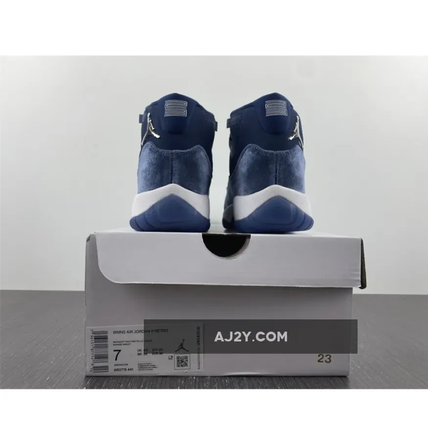 “I’m thoroughly impressed with my new Air Jordan 11s! ? The Midnight Navy/ Metallic Silver-White combo is stunning & the velvet mudguard adds a luxurious touch. ? 10/10 would recommend!”