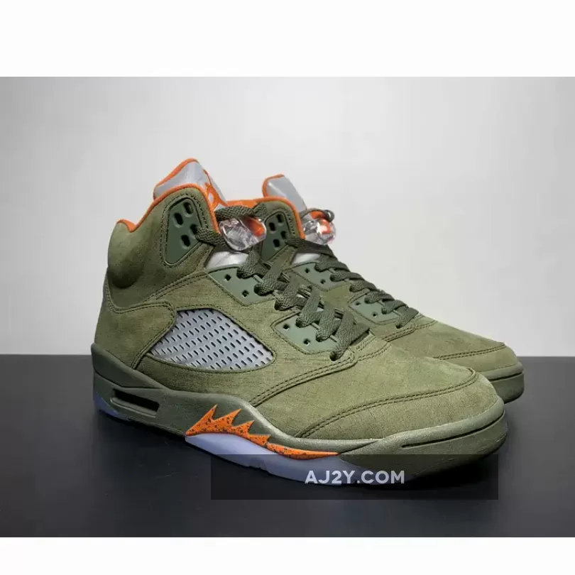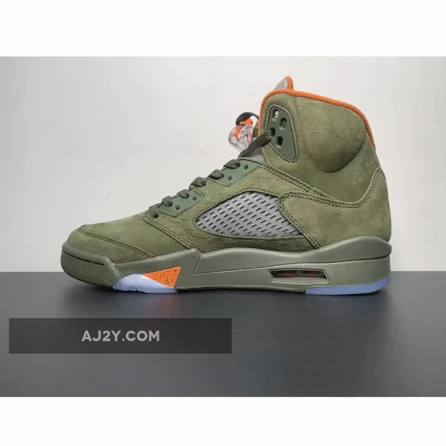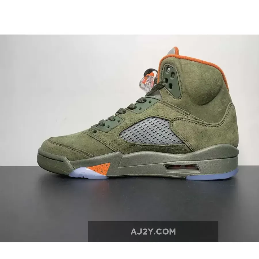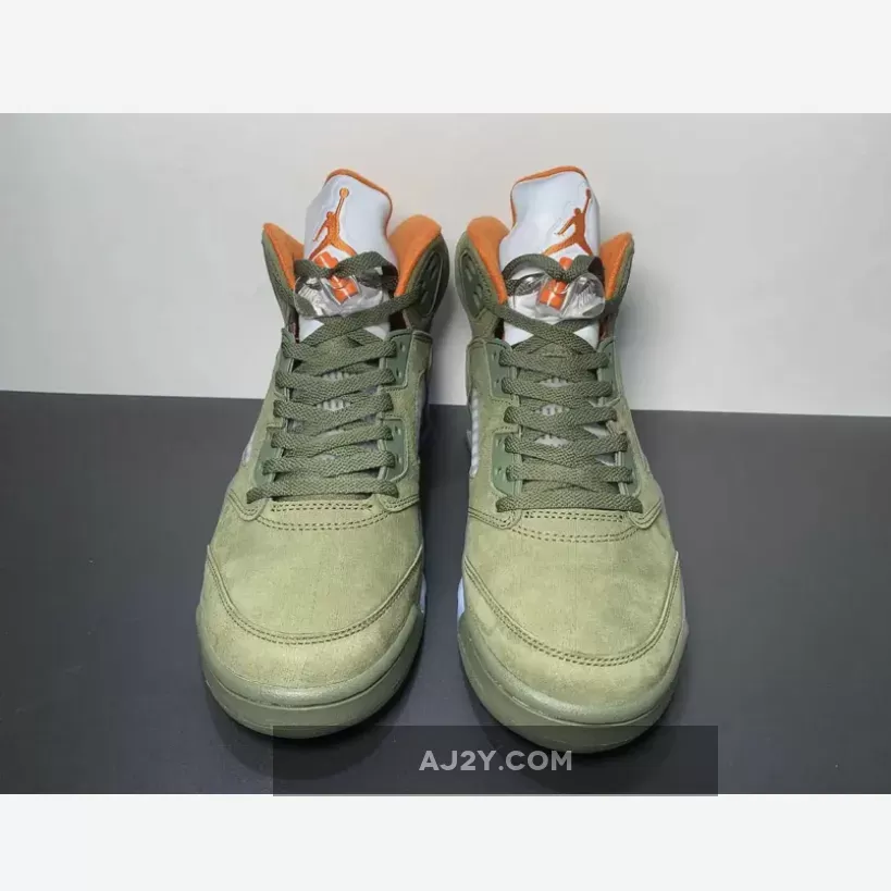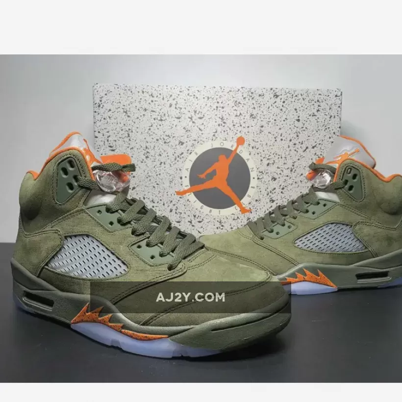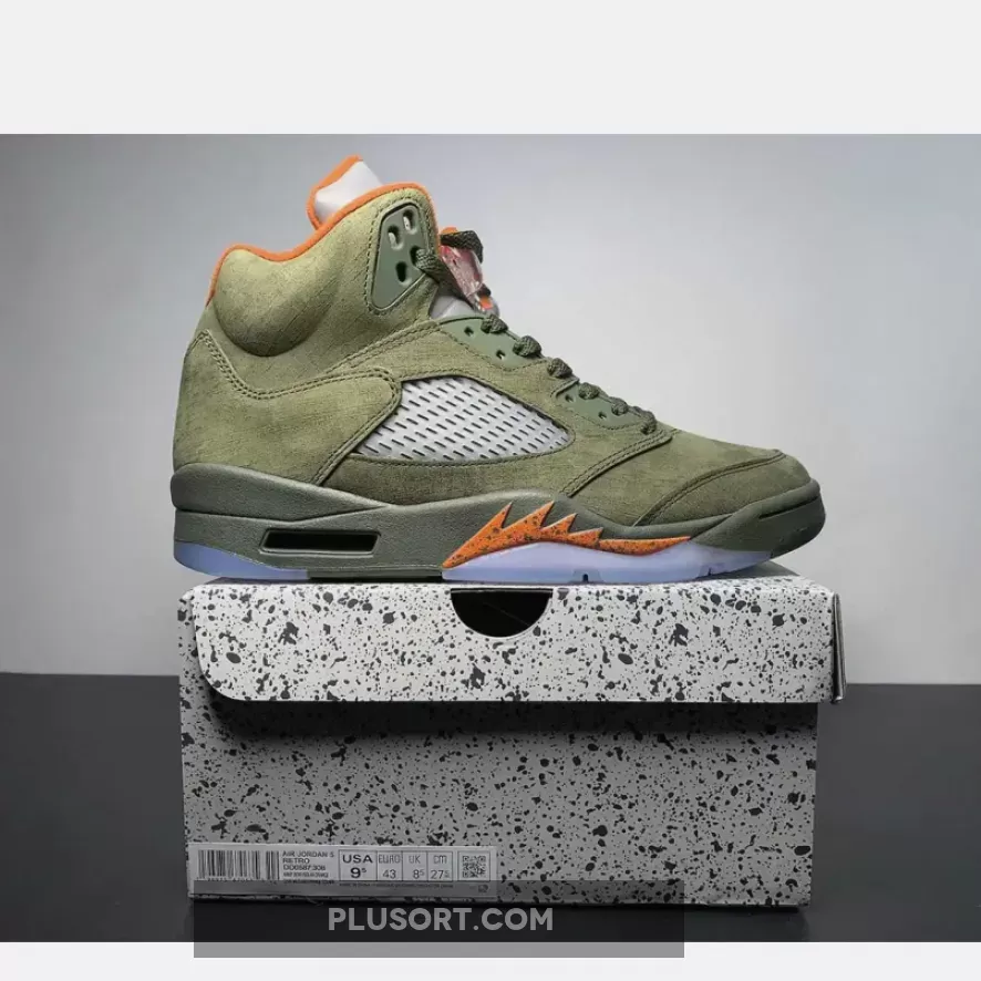 Solid colorway on the Air Jordan 5, brings back nostalgia vibes! The olive suede and orange accents look great together. Responsive customer service team, had a smooth experience with the order. Highly recommend!