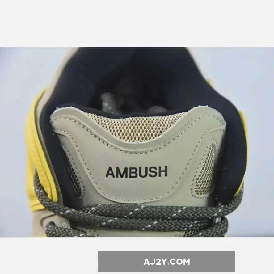 Additional branding includes a Swoosh on the heels and the AMBUSH stamp on the midsole’s heel, while co-branded details adorn the insoles. Yellow accents accentuate the signature “AIR” lettering, while Olive-colored shoelaces contrast the solid Black rubber sole, resulting in a visually striking design.