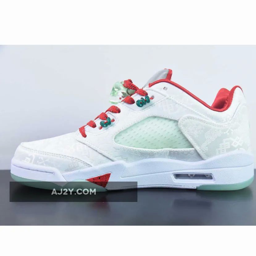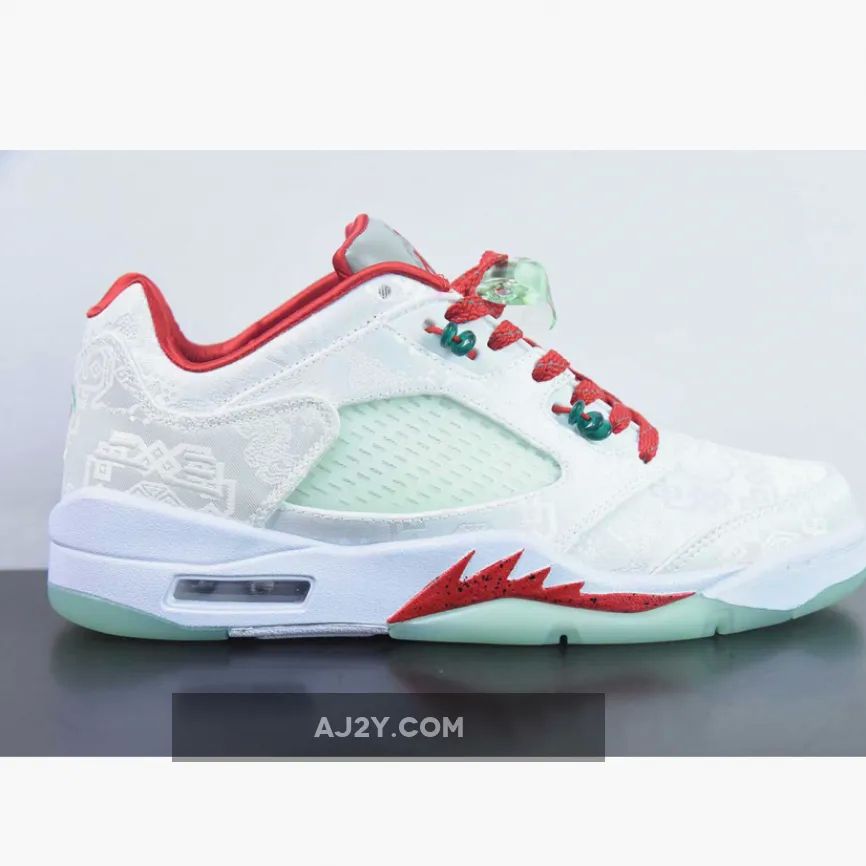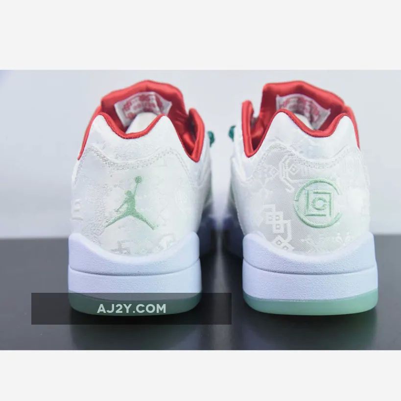 The CLOT x Air Jordan 5 Low “White Silk” offers a refined take on streetwear. The white silk upper paired with vibrant jade accents and auspicious red hits delivers a luxurious aesthetic. The meticulous packaging adds an extra layer of exclusivity. A must-have for discerning sneakerheads and fashion enthusiasts seeking a unique blend of style and craftsmanship.