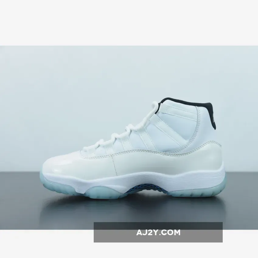 Look sharp and dapper in this Air Jordan 11 Retro “Legend Blue”. Based on the 1996 model, this is one of the cleanest out of all the original 11s. Made from leather and patent leather, these kicks feature an all-white colorway contrasted by a black outline on the ankle collar, blue Air Jordan branding on the tongue and side heel, as well as on the grooved sole. Exposed stitching and deconstructed lacing system deliver a distinctive twist.