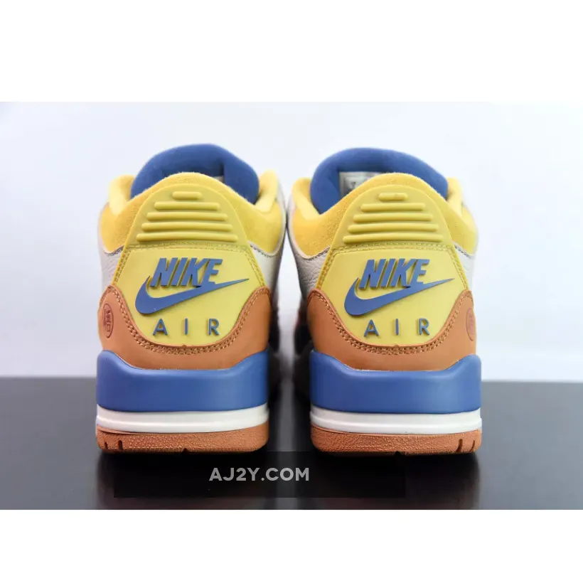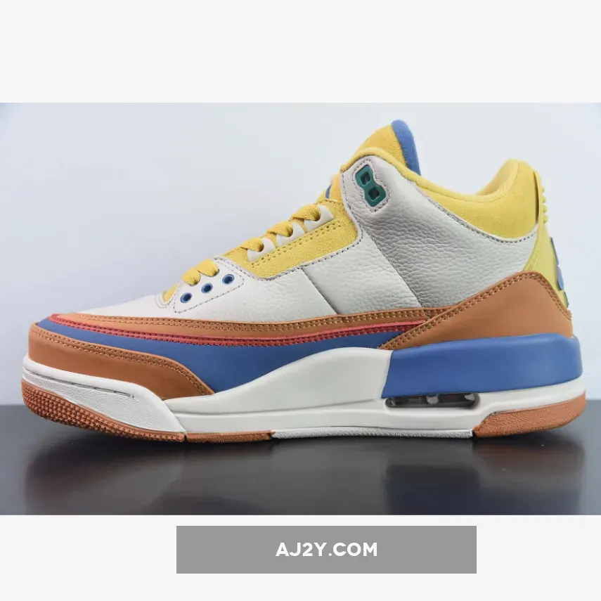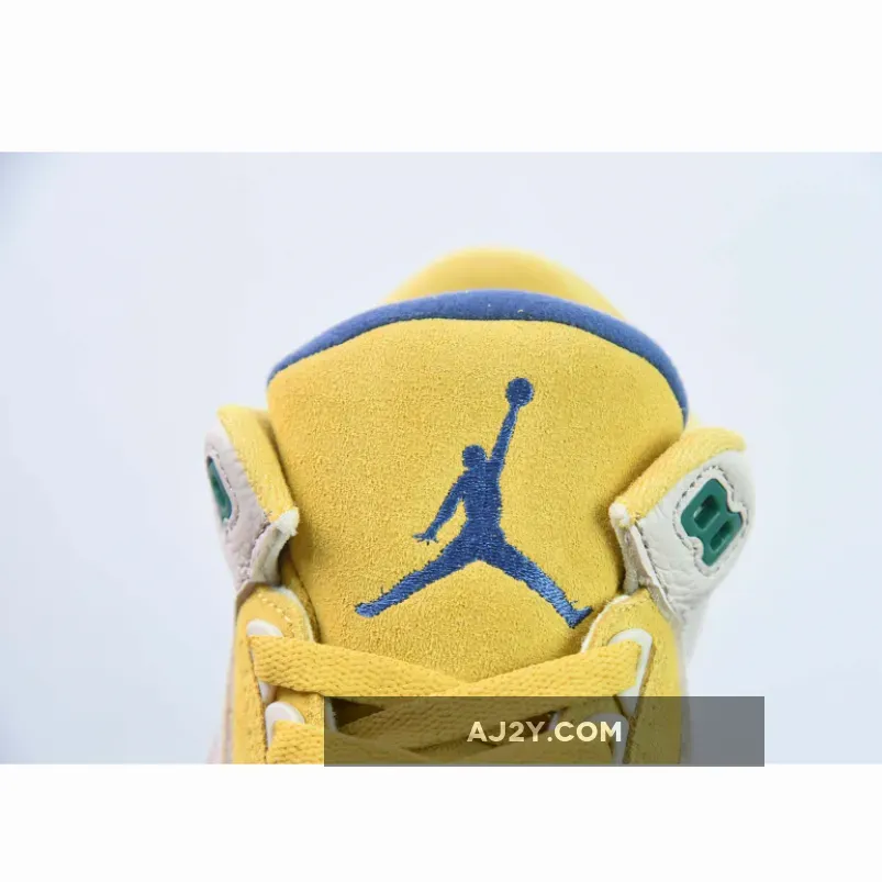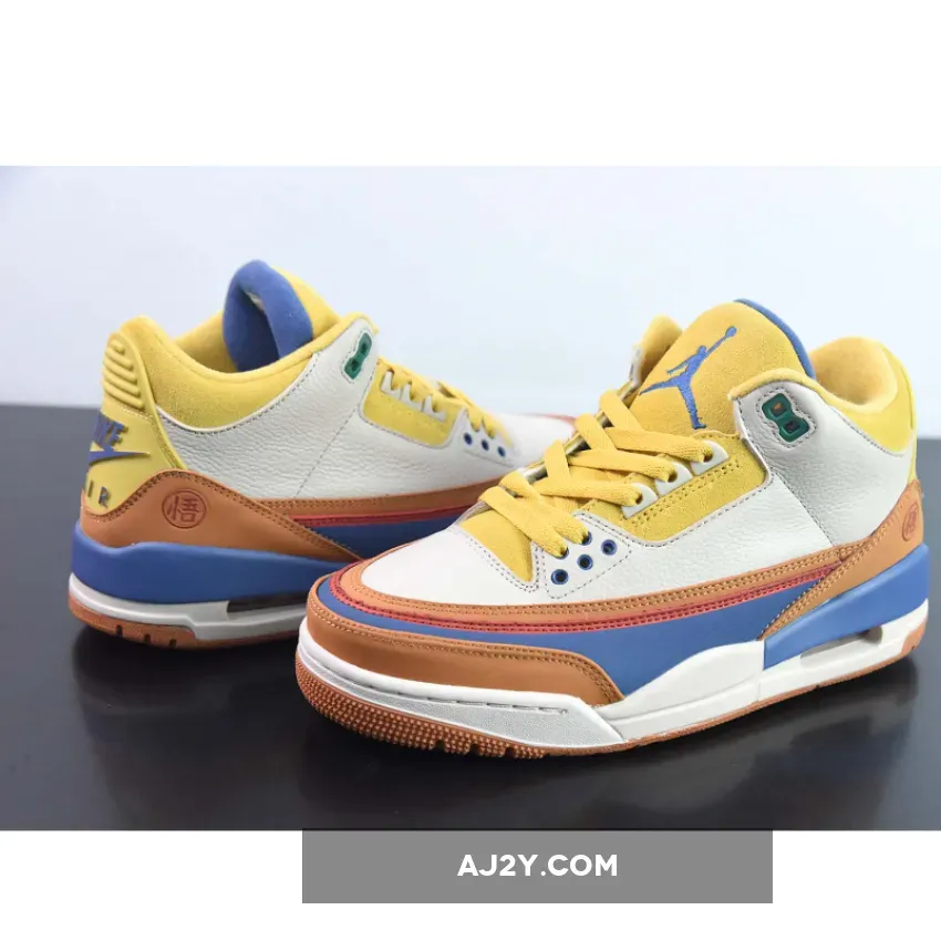 Starting from the top, the sock liner and the collar of the customised Air Jordan 3s, leading into the tongue and the lace stays, all have the bright yellow that characterises the form of the Super Saiya Jin 3. In contrast, the heel has the yellow of Goku’s signature tail.