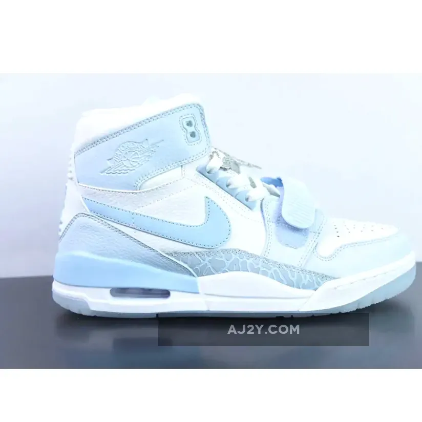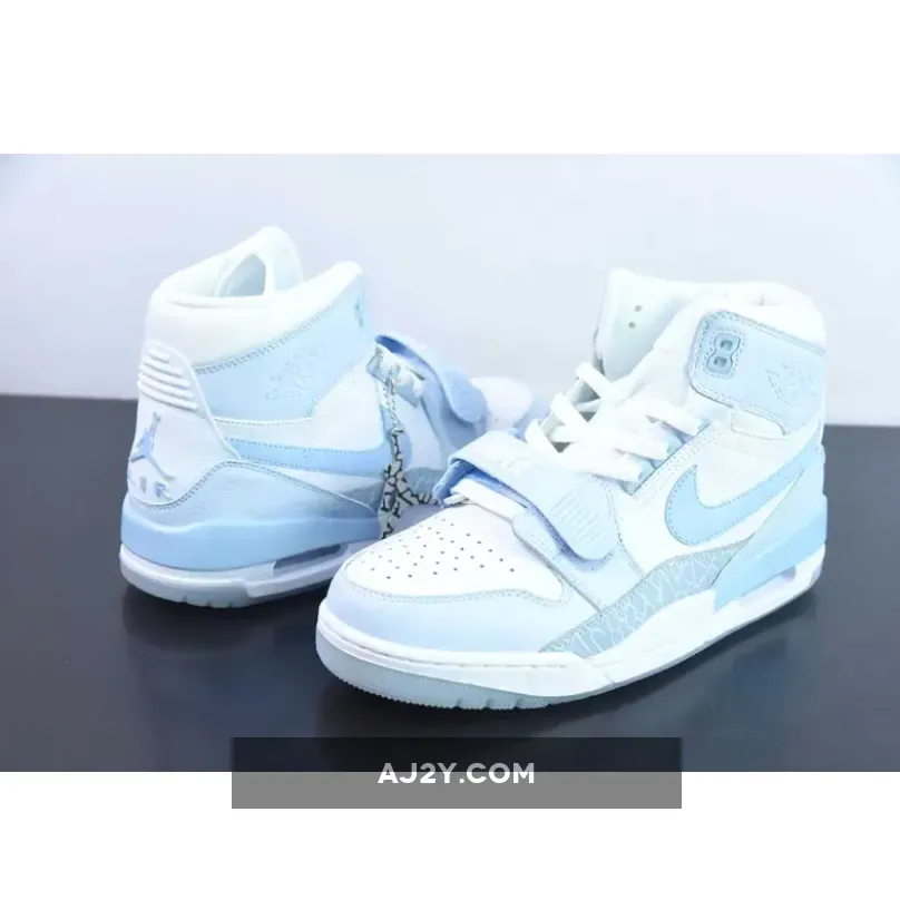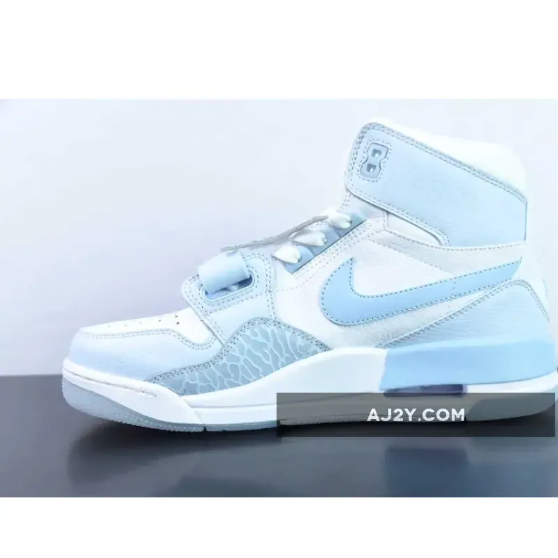 The Jordan Legacy 312 “Arctic Blue” sneakers stand out with their unique combination of materials and colors. The upper is crafted from quality leather, providing a durable and stylish base. Donning a “colorless” base and light blue contrast around the forefoot, along the tongue, and across the heel.