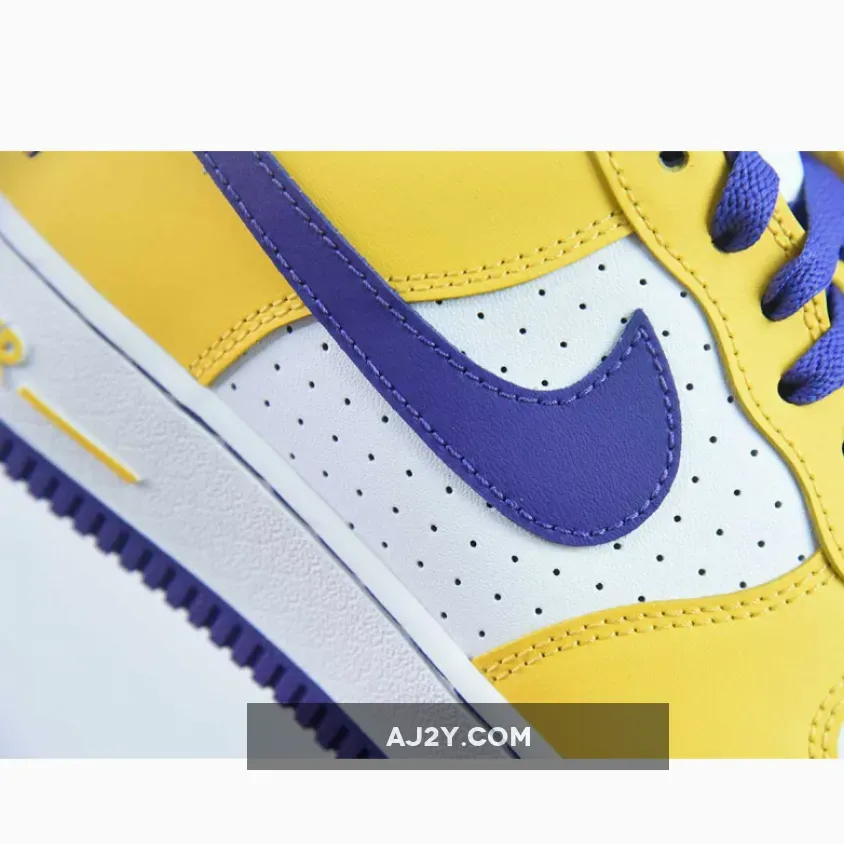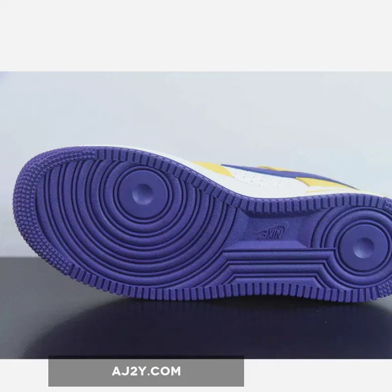 The Kobe Bryant x Nike Air Force 1 Low comes dressed in a White, Varsity Maize, and Varsity Purple color scheme.