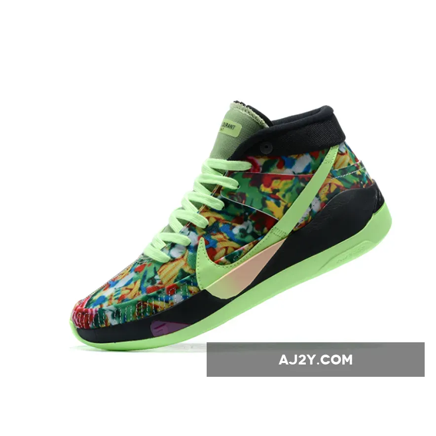 The Nike KD13 ‘Funk’ is a sleek sneaker with an intriguing blend of colors and materials. The floral pattern and bleached accents provide a fresh take on the classic KD silhouette. The vibrant color pops and playful design elements make this shoe stand out from the crowd. Overall, a stylish and comfortable shoe for both casual and athletic occasions.