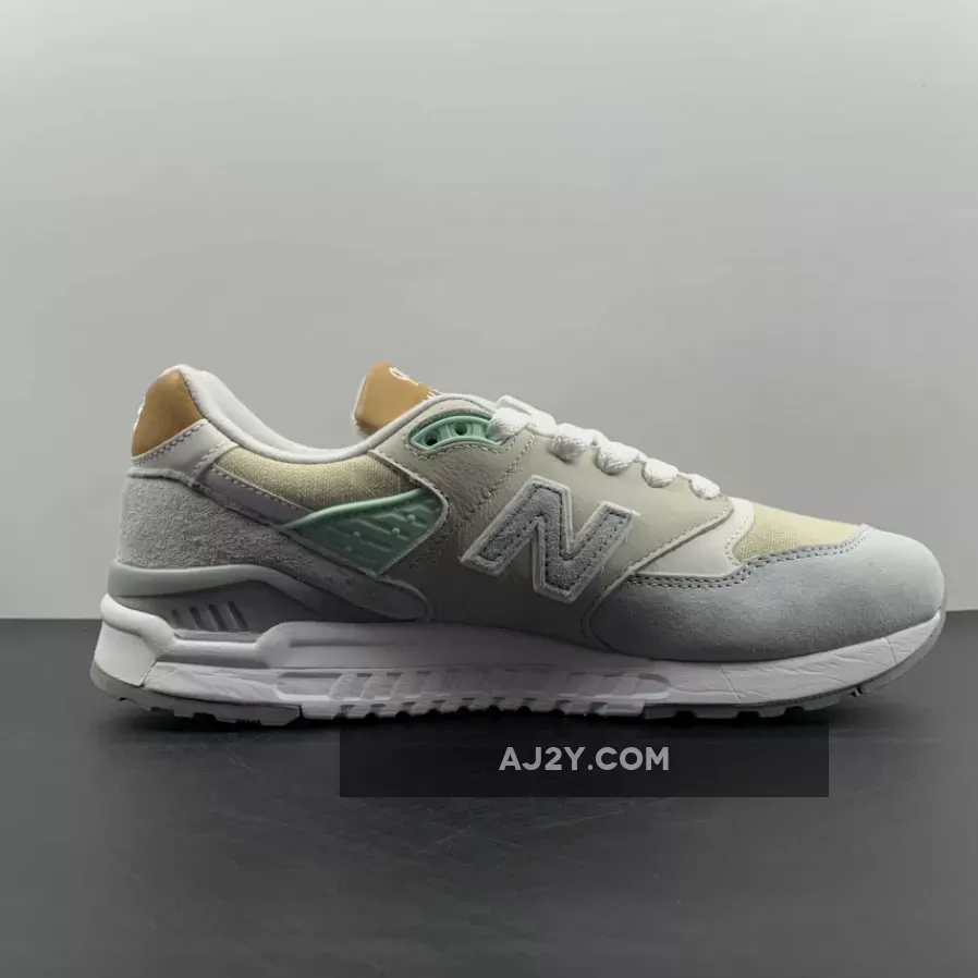 This is a “US Made” retro running shoe from New Balance that is combines a muted color palette with premium materials.