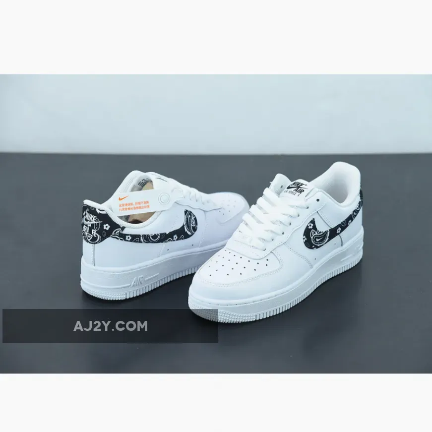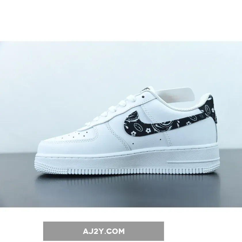 Crisp white tumbled leather meets captivating Black Paisley design. Perfect balance of classic & trendy. #AF1Low #PaisleyPrint #NikeSneakers