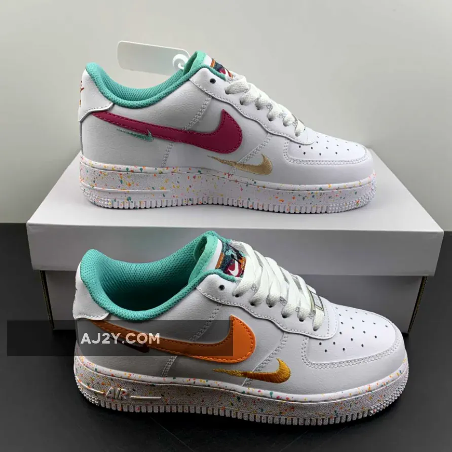 Loving the vibrant vibes on these Air Force 1s ?! The alternate-color Swooshes and embroidered Checks add a playful touch to the classic design ✨. The paint-like specks on the sole unit give it a unique, eye-catching finish ?. #AF1Love #NikeStyle #FallVibes ??