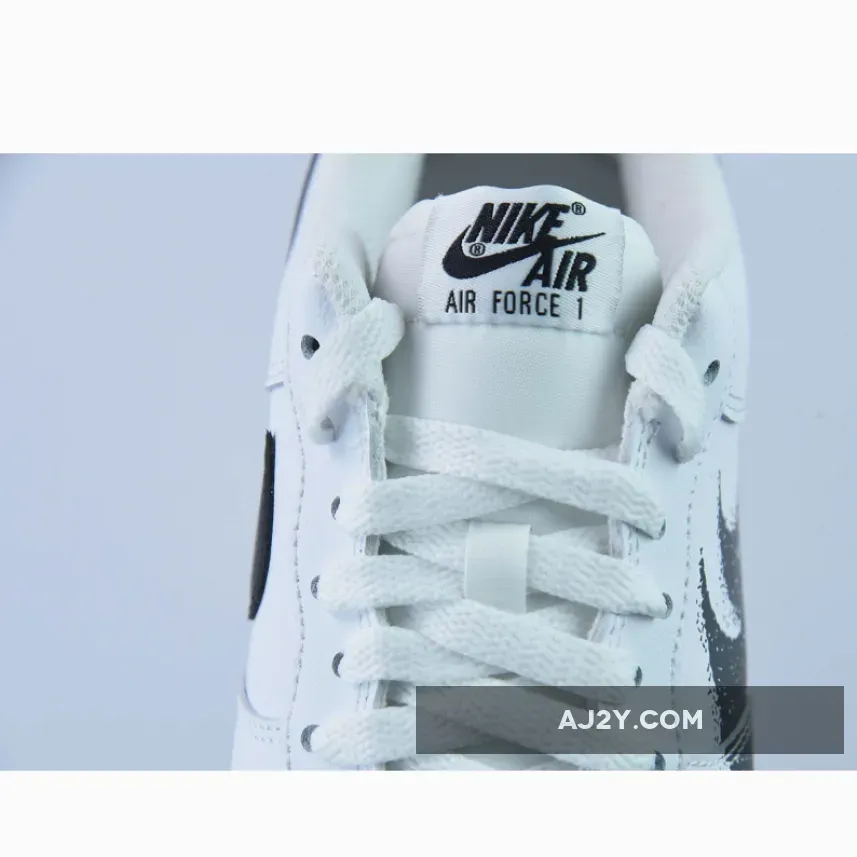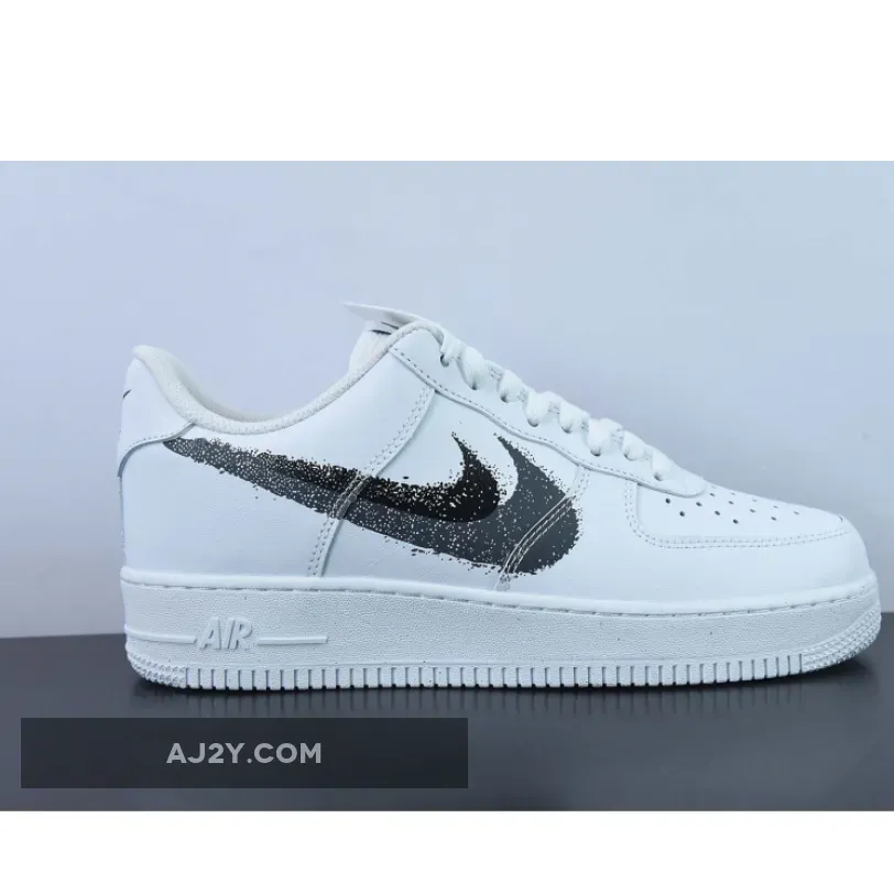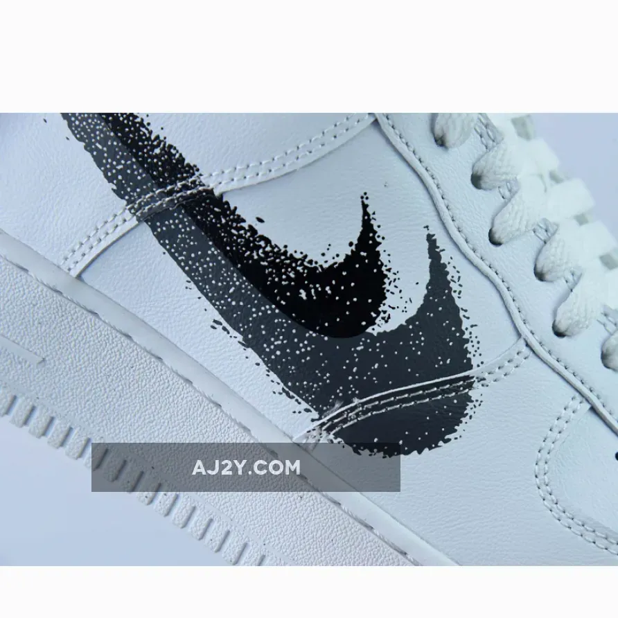 The Nike Air Force 1 Low Spray Paint Swoosh gets a makeover. This iteration retains the minimalistic look AF1 fans know and love but also features an artistic update. The black and grey double Swoosh design with a paint-like look pops out against the shoe’s Triple White look featuring a smooth white leather base and leather overlays. Other classic Nike Air Force 1 Low details such as the classic laces, lightweight tongue, comfortable inner lining and perforated toe all take their usual places. Finally, this shoe finishes with the signature chunky sole unit which now comes with a subtle speckled design.