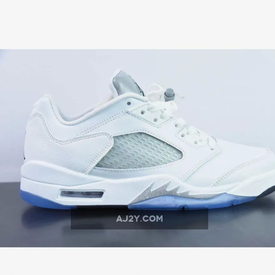 Fresh and frosty vibes on these Air Jordan 5 Low White/Black-Wolf Grey! 🔥 Love the all-white leather base paired with icy translucent outsole and subtle Wolf Grey accents. Design is sleek and comfy—perfect for spring/summer 😎. #AJ5Low #SneakerGame 💪