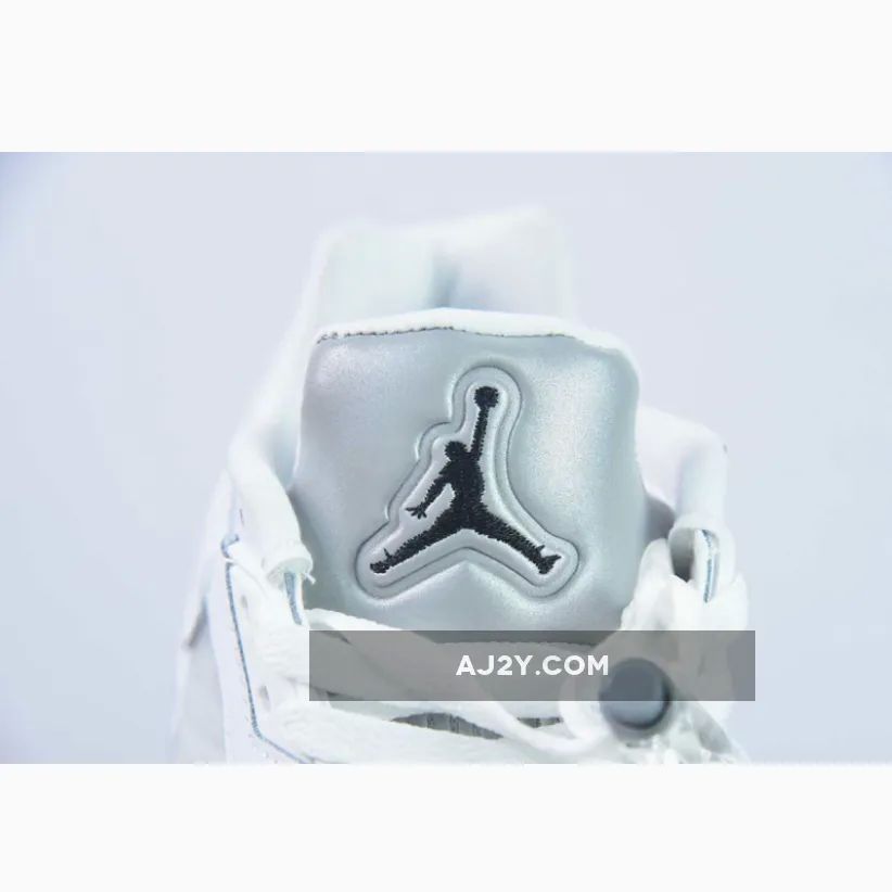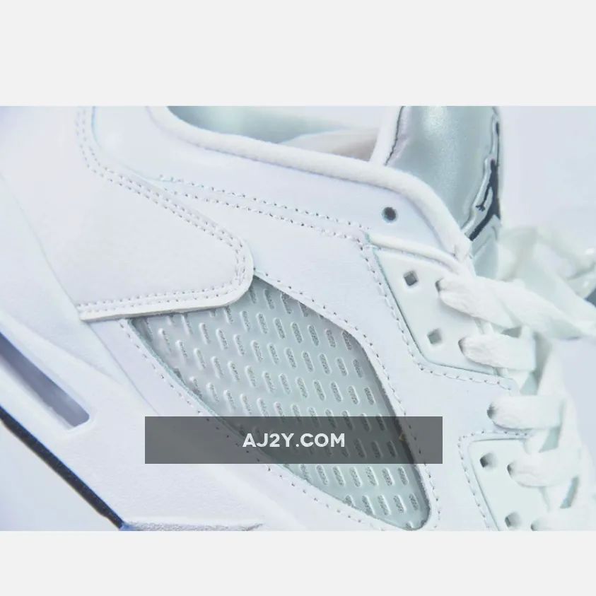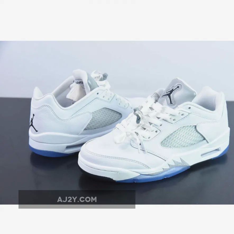 This new colorway of the Air Jordan 5 Low is VERY similar to the Air Jordan 5 Metallic Silver that released with the only main differences being that this is a low-top and features some speckling on the shark teeth on the midsole. The shoe features an all-White leather base upper with Black detailing and Wolf Grey accents throughout. Finishing off the look is an icy translucent outsole.