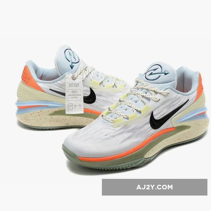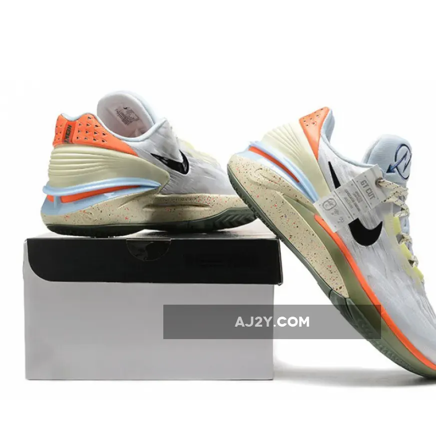 This offering of the Air Zoom GT Cut 2 comes dressed in a White, Black, Ice Blue, and Orange color scheme. Unlike its predecessor, it features a new traction design featuring grooves that separate and snap back to help players quickly make cuts on the court, refined heel counter, a craved-out midsole that reduces the weight of the shoe, and a heel Zoom Air unit.