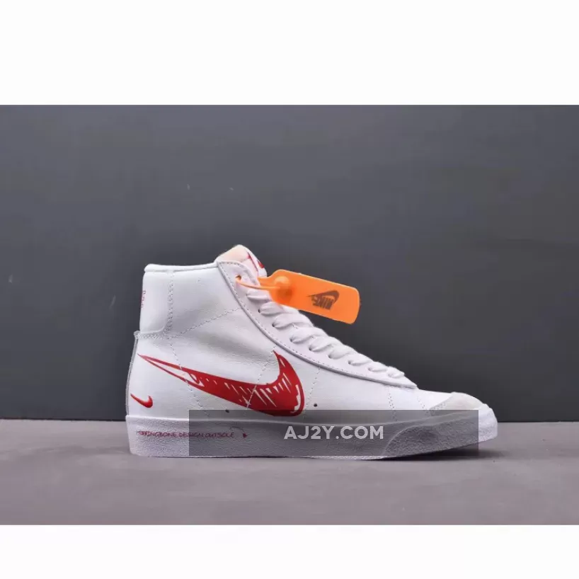 The Nike Blazer Mid 77 Sketch White Red is a high-top sneaker adopting a summit white and gym red-sail colorway. From schematics to sketches, the Nike Blazer Mid 77 Sketch White Red blends a pure white upper with red accents.