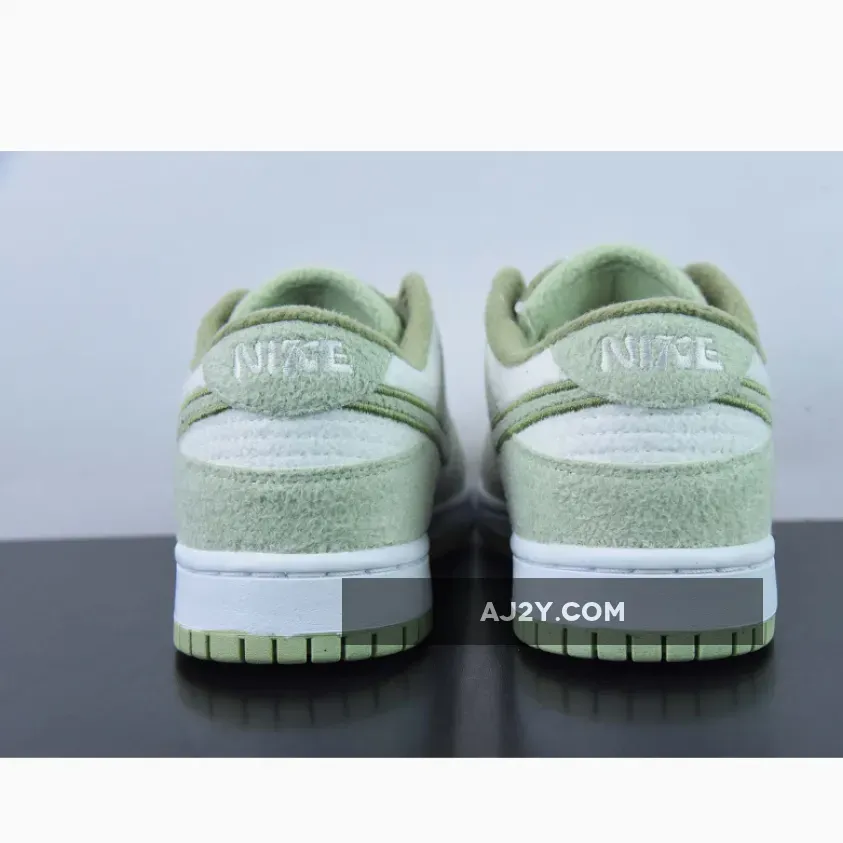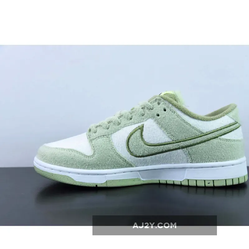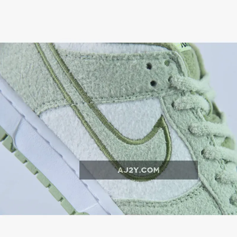 The Nike Women’s Dunk Low SE ‘Honeydew’ transforms the hardwood classic with a refreshed build, featuring a fuzzy fleece fabrication in lieu of traditional leather materials. The plush textile combines a white base with Honeydew green overlays and a color-matched Swoosh outlined in tonal embroidery. Updated Nike branding decorates the tongue tag, heel tab, and sockliner. The shoe’s rubber cupsole is unchanged from the original, highlighted by white sidewalls and a lime green outsole.