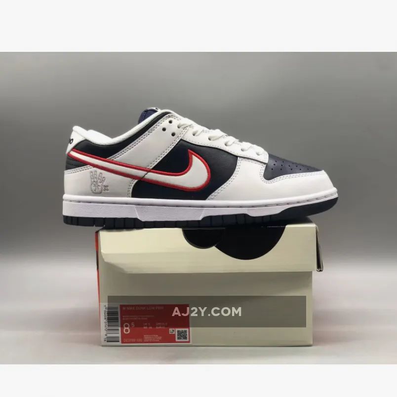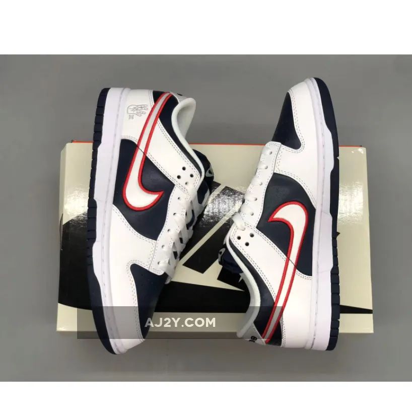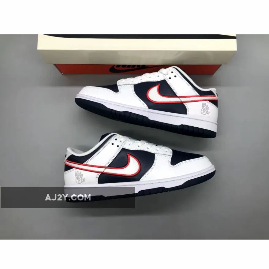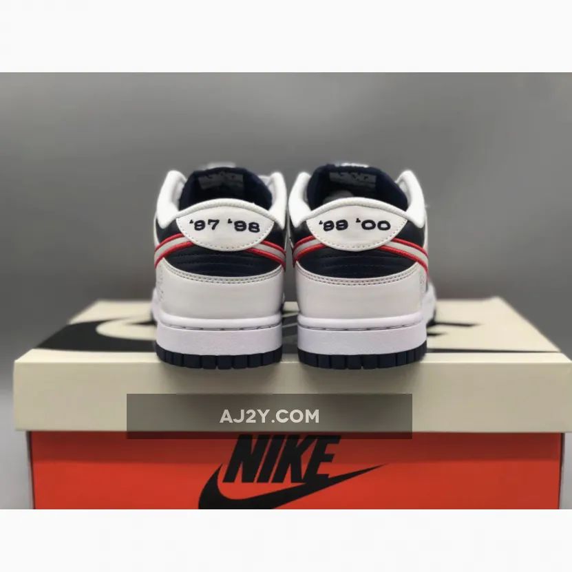 the Nike Dunk Low “Houston Comets Four-Peat” has an “Obsidian” leather base with “White” leather overlays and a “University Red” Swoosh that create a patriotic blend. The legendary four-peat is symbolized on the heel counter as it boasts a hand putting up the number four with a small times symbol (x) next to it. The sneaker is finished with consecutive championship years on the heel tab ranging from ’97 to ’00.