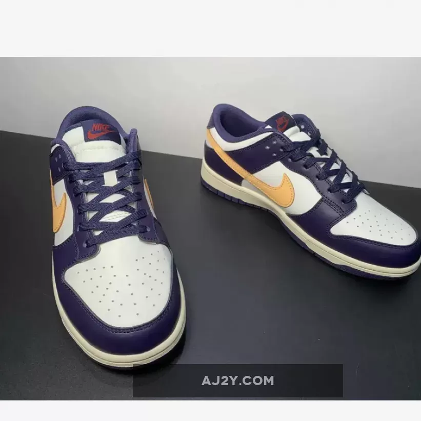 Phenomenal color scheme 🤩 The Dunk Low “From Nike To You” features an eye-catching Purple Ink leather outfit and unique accents like Melon Tint Swoosh logos and maroon insignia. Construction feels premium with breathable leather and perforations for comfort. #NikeDunkLow #SneakerGoals 👟