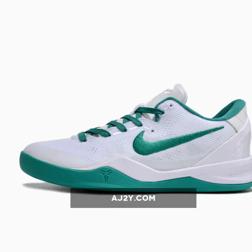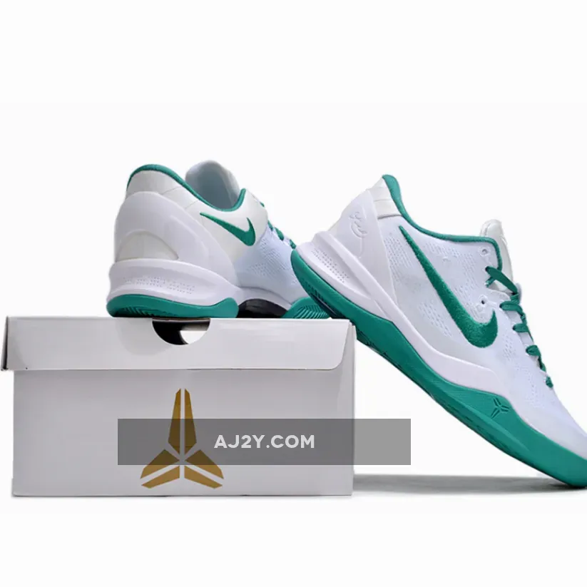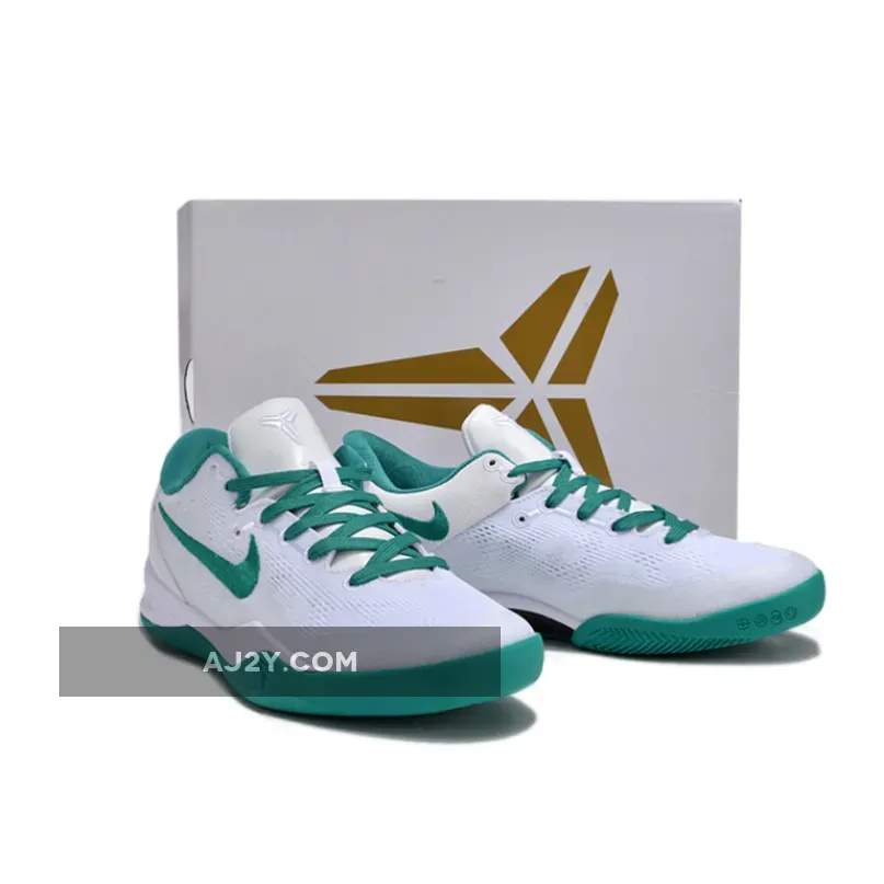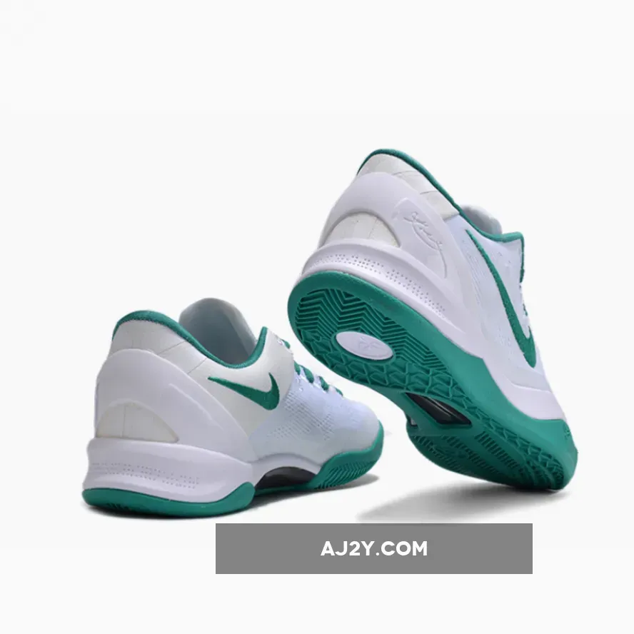 This Nike Kobe 8 Protro comes dressed in a White and Radiant Emerald color combination. The former highlights the profile Swooshes, interior, laces, and rubber outsole; while the latter forms the entirety of the lightweight, knitted base layer. Moreover, Kobe’s insignia and autograph can be found on the heel counter and insoles, respectively.