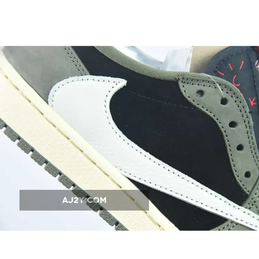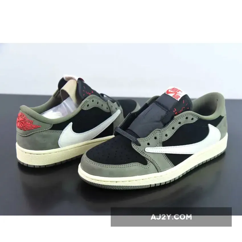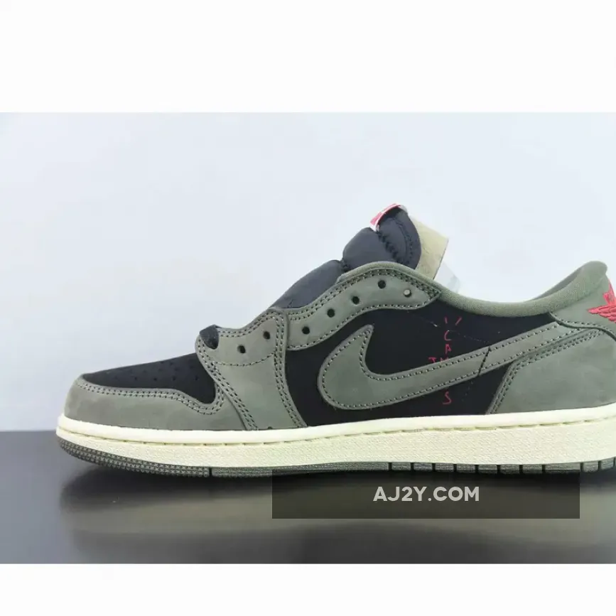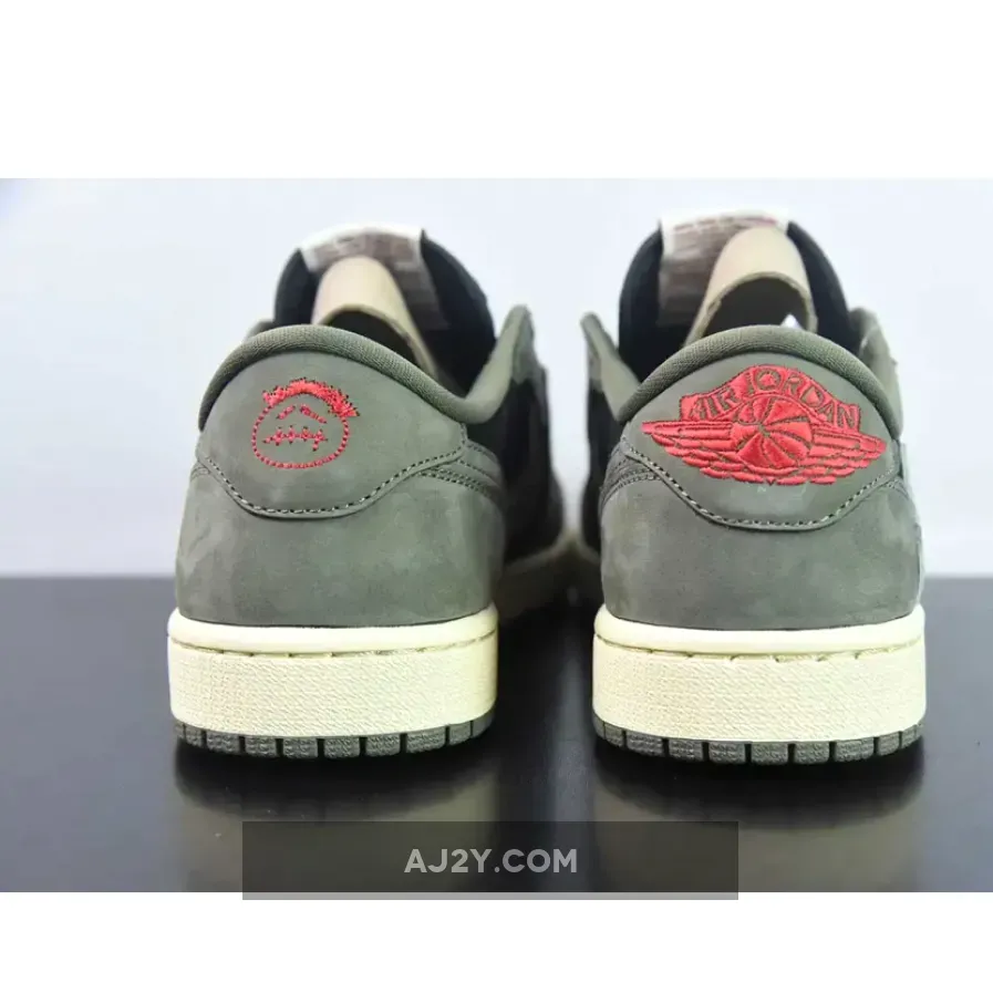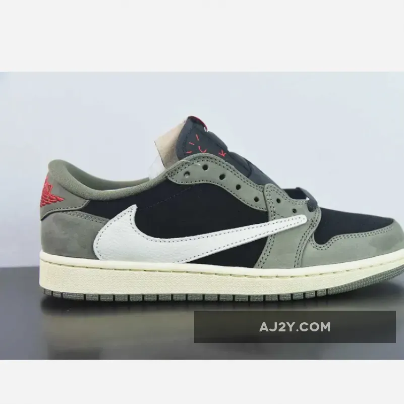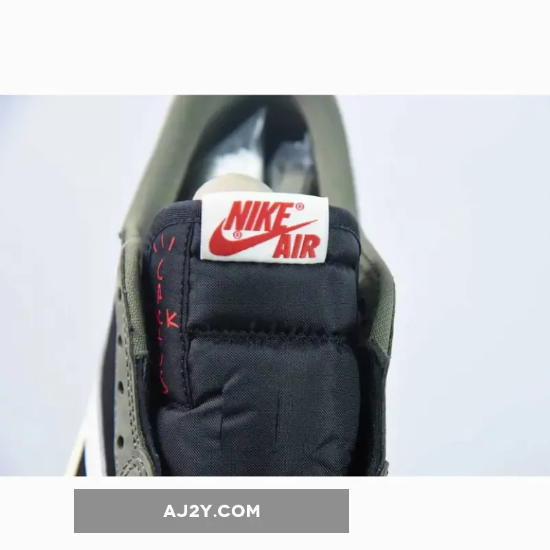 Anticipations surround the Jordan 1 Low “Black Olive,” crafted by Travis Scott, with expectations of incorporating distinctive elements. The shoe boasts a mix of leather and nubuck, mesh tongues, and inner lining. Notable details include the iconic backward Swoosh on the side, Cactus Jack tongue branding, and the rapper’s face logos from Houston on the heels. The design is capped off with an aged midsole for a vintage vibe.