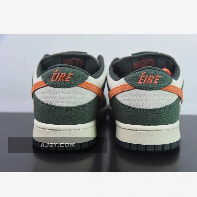 Solid SB Dunk Lows with an understated Irish touch. The suede is premium and the color scheme is inspired by the Irish flag. The Celtic harp detail and “Eire” heel tab add a unique flair. Functional for skating, these sneakers offer both style and durability. A solid option for fans of SB Dunks and Irish culture.