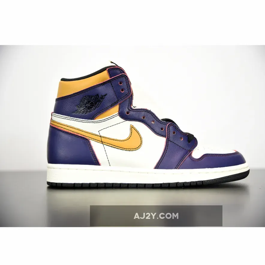 This Air Jordan 1 was originally spotted on the feet of Nike SB team rider Theotis Beasley that comes in a Los Angeles Lakers color scheme. It features a White leather toe box and side panels with Purple trimming along the toe, eyelets and heel, and Yellow on the Swoosh logos and collar. Much like previous Nike SB releases, this one will have a wear away design that looks to have a Chicago-like scheme underneath.