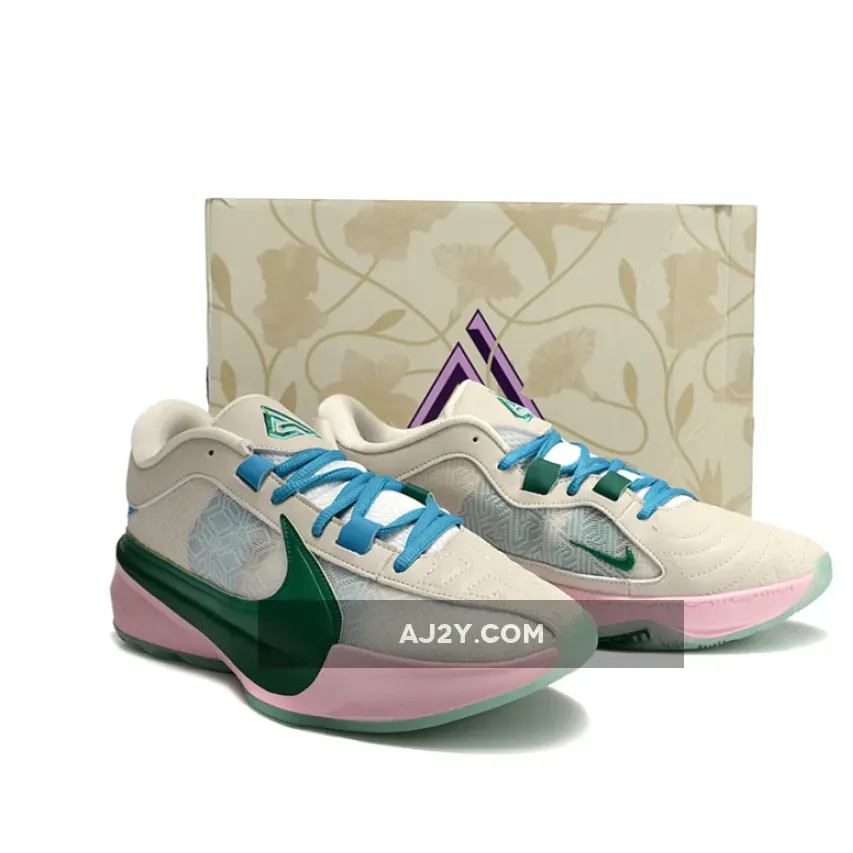 Giannis Antetokounmpo has always supported and pushed his three brothers, Thanasis, Kostas, and Alex, all through his playing career in the NBA. The Antetokounmpo brothers are featured prominently in the newest colorway of the Zoom Freak 5, inspired by their rise to the NBA.