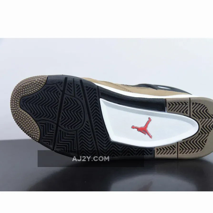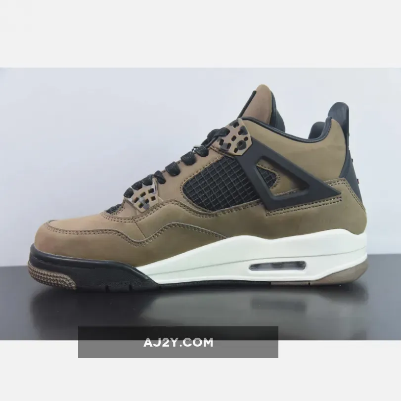 This version of the Air Jordan 4 features an Olive nubuck upper with Black detailing throughout.
